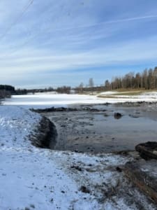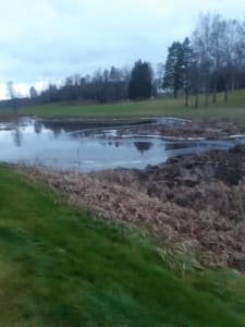 Ny vatten / dräneringsledning kommer att grävas ner mellan dogleg hål 12 genom björkdungen ner mot 16:e fairway.